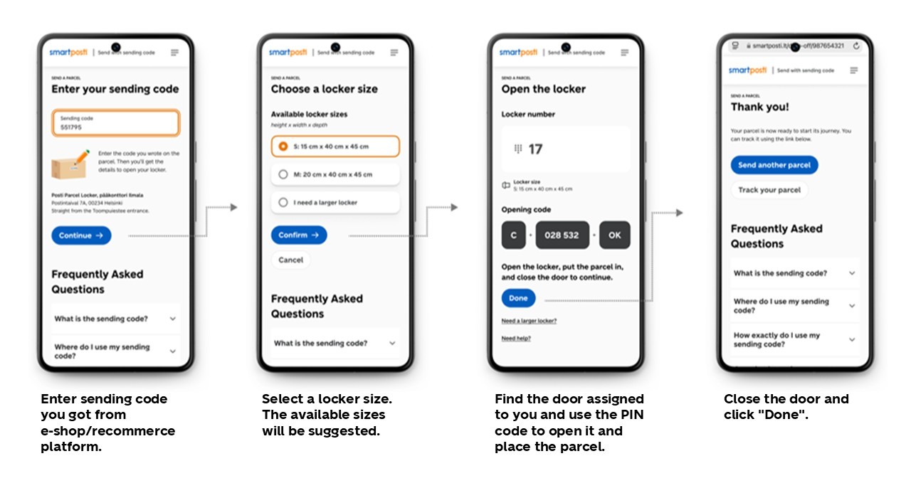 Send the parcel Find the correct locker door, open it with the door code shown on your screen, and place the parcel inside. If the parcel doesn’t fit into the chosen locker, you can change the locker size. Close the door and tap “done” on your phone screen.